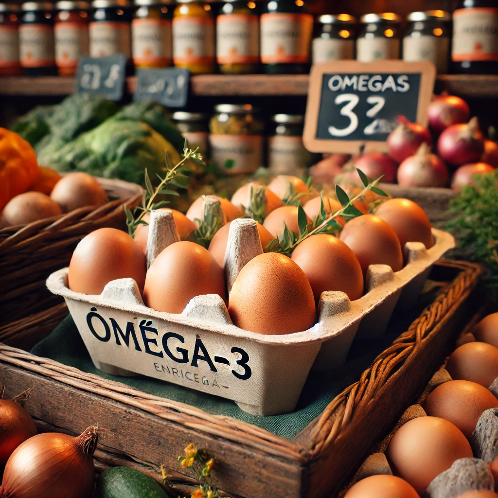 Ovos Enriquecidos com Ômega-3: Galinhas alimentadas com fontes de ômega-3 como linhaça.