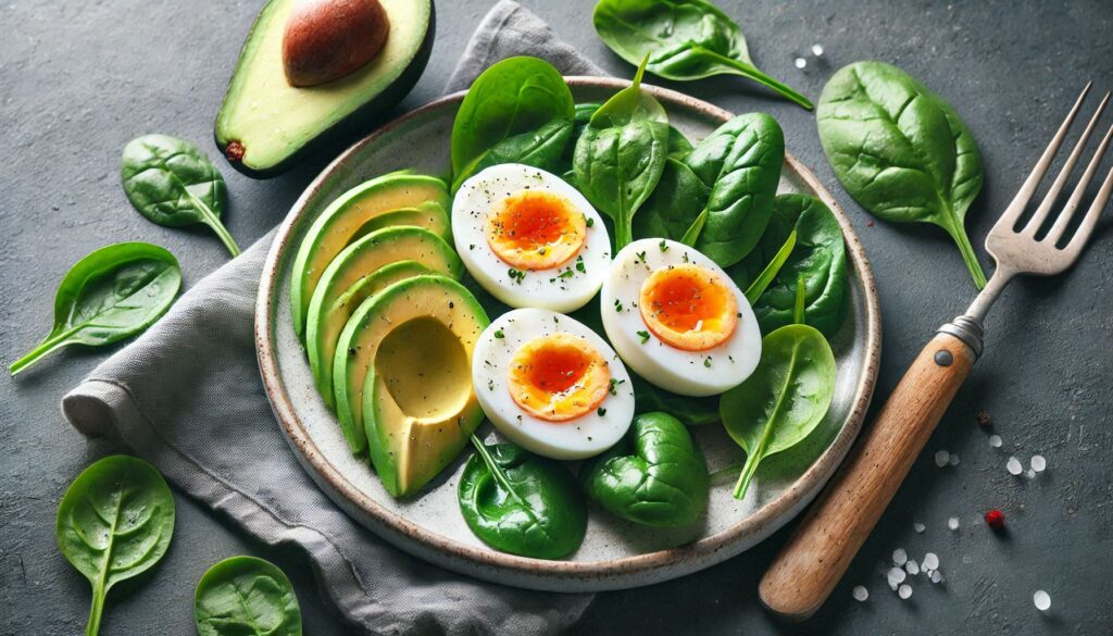 Um omelete com espinafre acompanhado por vegetais fermentados ou kombucha seria uma refeição perfeito.